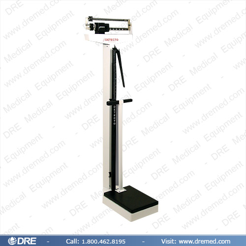 The Detecto 448Physician Scale features a height rod in inches and centimeters, transport wheels for mobility, and a balancing hand post for the elderly or weak individuals. The removable platform cover is easily cleaned. The weight beam can be clearly read from both sides.