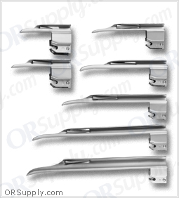 English Profile blades have a satin finish for reduced glare. The MacIntosh blade has a gentle curve and the flange extends entirely down to the distal tip. The Miller blades have lamps on the traditional side and have a smooth tip.
