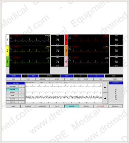 - Grabación manual: ECG análisis, tendencias, gráficos y tiras de arritmias, detección de datos de ECG y formas de onda de color (20 colores).